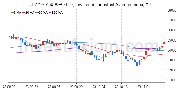 미국증시 현황 분석, 주요 미국 주가지수 다우존스산업 나스닥 S&P500 VIX RUSSEL1000 분석 2023-11-16