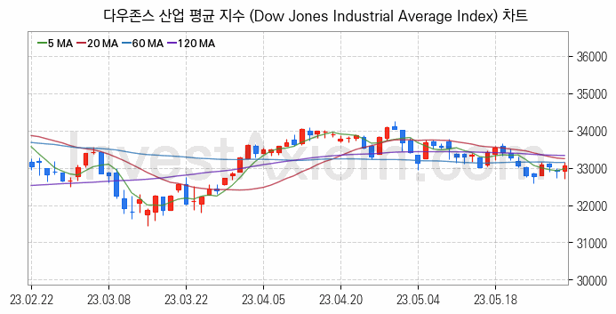 미국증시 현황 분석, 주요 미국 주가지수 다우존스산업 나스닥 S&P500 VIX RUSSEL1000 분석 2023-05-24