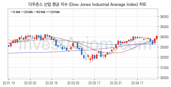 미국증시 현황 분석, 주요 미국 주가지수 다우존스산업 나스닥 S&P500 VIX RUSSEL1000 분석 2023-04-28