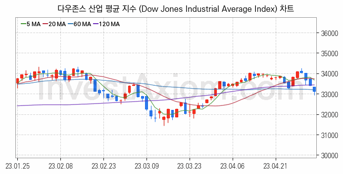 미국증시 현황 분석, 주요 미국 주가지수 다우존스산업 나스닥 S&P500 VIX RUSSEL1000 분석 2023-05-01