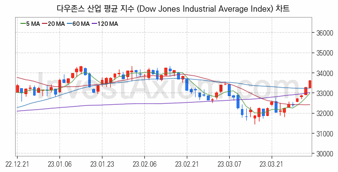 미국증시 현황 분석, 주요 미국 주가지수 다우존스산업 나스닥 S&P500 VIX RUSSEL1000 분석 2023-03-29