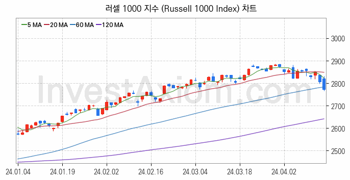 러셀 1000 지수의 장중 최저 지수는 1.93% 하락한 2766.77포인트이며, 시작 지수를 기준으로 장중 하락 흐름이 있었습니다.