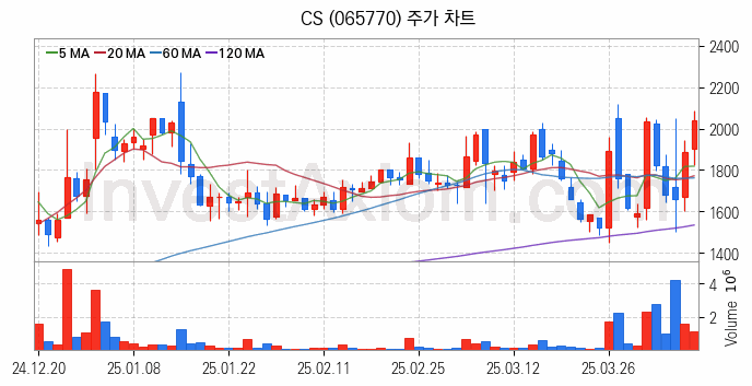 CS(065770) 종목은 시가 1,903원으로 시작해 2,040원으로 마감했습니다.
