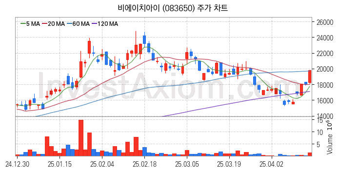 비에이치아이(083650) 종목은 시가 18,280원으로 시작해 19,830원으로 마감했습니다.