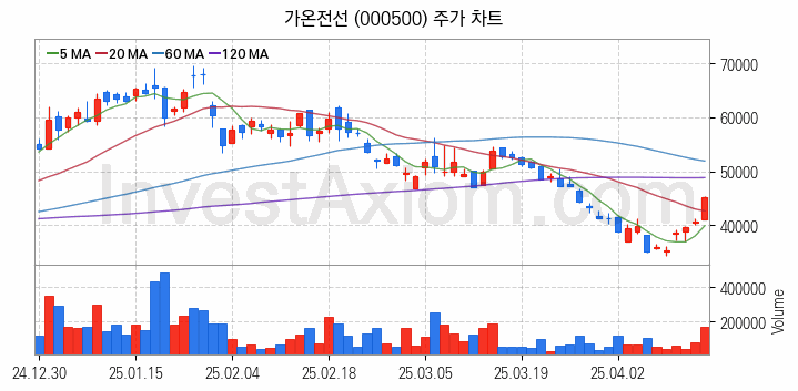 가온전선(000500) 종목은 시가 41,100원으로 시작해 45,250원으로 마감했습니다.
