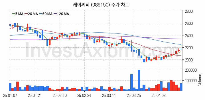 케이씨티(089150) 종목은 시가 2,175원으로 시작해 2,170원으로 마감했습니다.