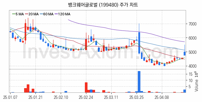 뱅크웨어글로벌(199480) 종목은 시가 5,010원으로 시작해 4,765원으로 마감했습니다.