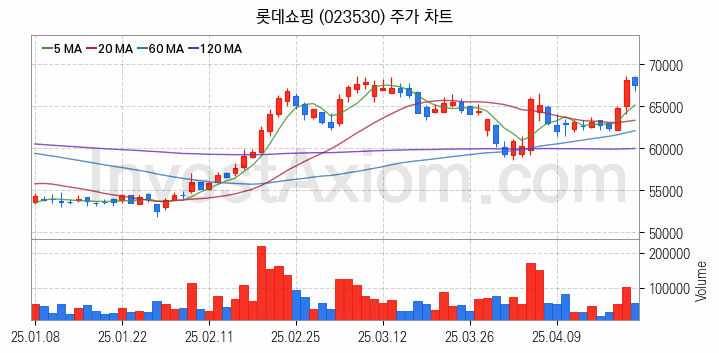 롯데쇼핑(023530) 종목은 시가 68,500원으로 시작해 67,500원으로 마감했습니다.