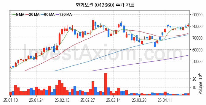 한화오션(042660) 종목은 시가 80,500원으로 시작해 80,900원으로 마감했습니다.