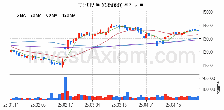 그래디언트(035080) 종목은 시가 13,650원으로 시작해 13,620원으로 마감했습니다.
