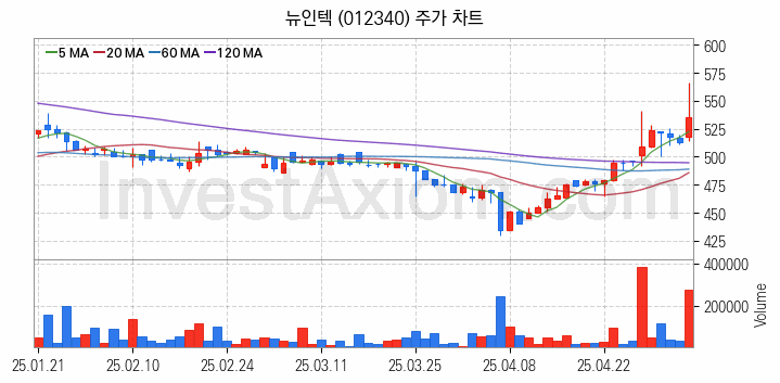 뉴인텍(012340) 종목은 시가 518원으로 시작해 535원으로 마감했습니다.
