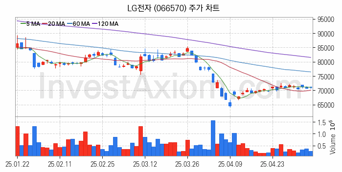 LG전자(066570) 종목은 시가 71,200원으로 시작해 71,100원으로 마감했습니다.