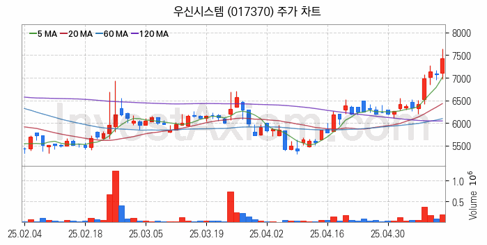 우신시스템(017370) 종목은 시가 7,100원으로 시작해 7,430원으로 마감했습니다.