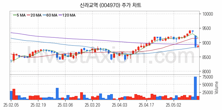 신라교역(004970) 종목은 시가 8,860원으로 시작해 8,880원으로 마감했습니다.