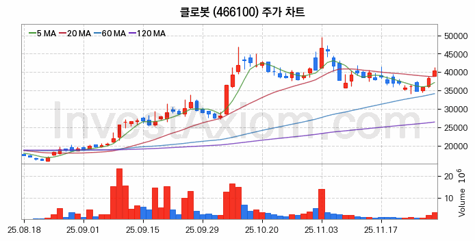 클로봇 (주식 종목 코드 : 466100) 주가 분석 내용의 기준 시점은 2025년 11월 28일이며, 분석 기준 시점으로부터의 주가 흐름 및 거래량 데이터를 바탕으로 분석 한 내용입니다.