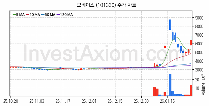모베이스(101330) 종목은 시가 5,800원으로 시작해 6,400원으로 마감했습니다.
