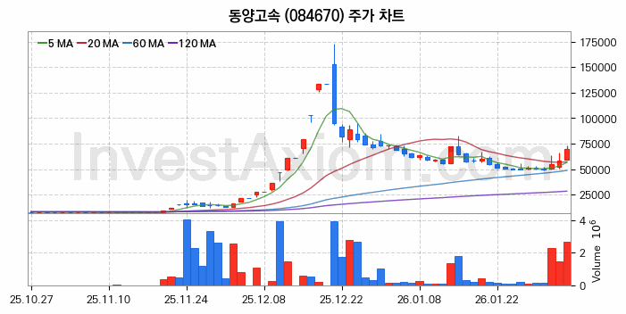2026년 02월 04일, 동양고속 주식 종목(084670)의 주가는 전일(58300원) 대비 11600원(약 19.9%) 상승한 69900원입니다.