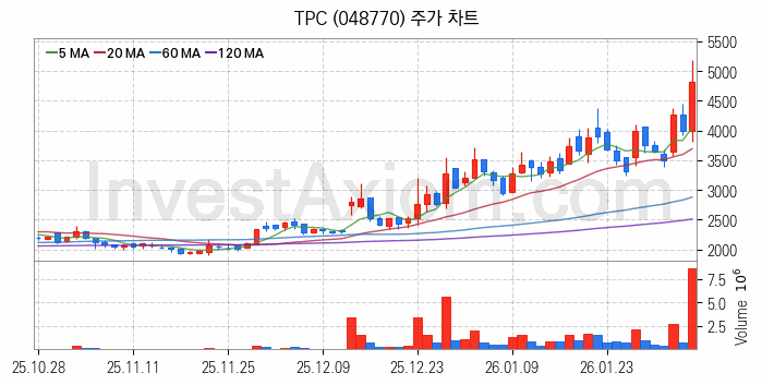 TPC(048770) 종목은 시가 3,985원으로 시작해 4,820원으로 마감했습니다.