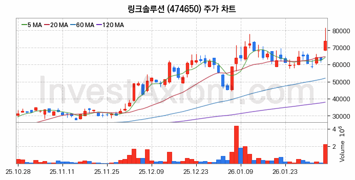 링크솔루션 (주식 종목 코드 : 474650) 주가 분석 내용의 기준 시점은 2026년 02월 05일이며, 분석 기준 시점으로부터의 주가 흐름 및 거래량 데이터를 바탕으로 분석 한 내용입니다.