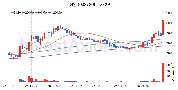 삼영 (주식 종목 코드 : 003720) 주가 분석 내용의 기준 시점은 2026년 02월 11일이며, 분석 기준 시점으로부터의 주가 흐름 및 거래량 데이터를 바탕으로 분석 한 내용입니다.