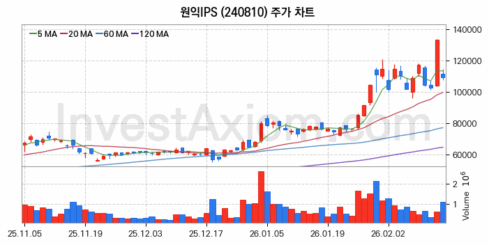 원익IPS (주식 종목 코드 : 240810) 주가 분석 내용의 기준 시점은 2026년 02월 13일이며, 분석 기준 시점으로부터의 주가 흐름 및 거래량 데이터를 바탕으로 분석 한 내용입니다.