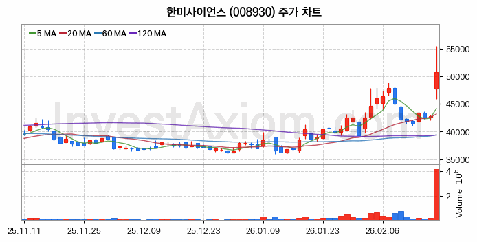 한미사이언스 (주식 종목 코드 : 008930) 주가 분석 내용의 기준 시점은 2026년 02월 24일이며, 분석 기준 시점으로부터의 주가 흐름 및 거래량 데이터를 바탕으로 분석 한 내용입니다.