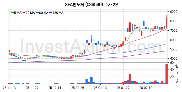 SFA반도체 (주식 종목 코드 : 036540) 주가 분석 내용의 기준 시점은 2026년 02월 26일이며, 분석 기준 시점으로부터의 주가 흐름 및 거래량 데이터를 바탕으로 분석 한 내용입니다.