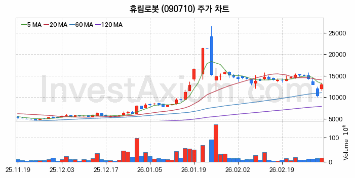 휴림로봇 (주식 종목 코드 : 090710) 주가 분석 내용의 기준 시점은 2026년 03월 05일이며, 분석 기준 시점으로부터의 주가 흐름 및 거래량 데이터를 바탕으로 분석 한 내용입니다.