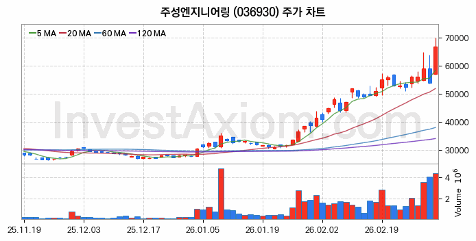 주성엔지니어링 (주식 종목 코드 : 036930) 주가 분석 내용의 기준 시점은 2026년 03월 05일이며, 분석 기준 시점으로부터의 주가 흐름 및 거래량 데이터를 바탕으로 분석 한 내용입니다.