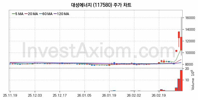 대성에너지 (주식 종목 코드 : 117580) 주가 분석 내용의 기준 시점은 2026년 03월 05일이며, 분석 기준 시점으로부터의 주가 흐름 및 거래량 데이터를 바탕으로 분석 한 내용입니다.