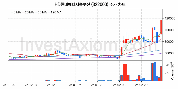 HD현대에너지솔루션 주가 전망 분석, 주식 차트 분석과 기간 수익률 및 주가 변동성 분석 (26년03월06일)