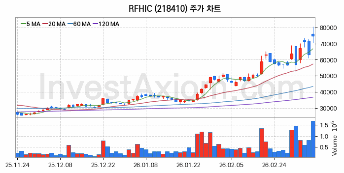 RFHIC (주식 종목 코드 : 218410) 주가 분석 내용의 기준 시점은 2026년 03월 10일이며, 분석 기준 시점으로부터의 주가 흐름 및 거래량 데이터를 바탕으로 분석 한 내용입니다.