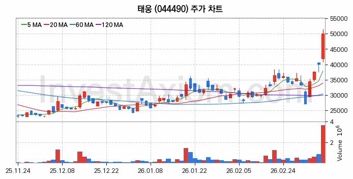 태웅 (주식 종목 코드 : 044490) 주가 분석 내용의 기준 시점은 2026년 03월 10일이며, 분석 기준 시점으로부터의 주가 흐름 및 거래량 데이터를 바탕으로 분석 한 내용입니다.