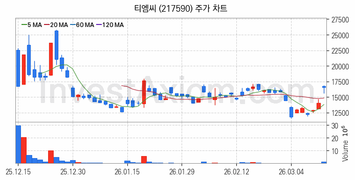 티엠씨(217590) 종목은 시가 16,750원으로 시작해 16,540원으로 마감했습니다.