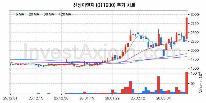 신성이엔지 (주식 종목 코드 : 011930) 주가 분석 내용의 기준 시점은 2026년 03월 17일이며, 분석 기준 시점으로부터의 주가 흐름 및 거래량 데이터를 바탕으로 분석 한 내용입니다.