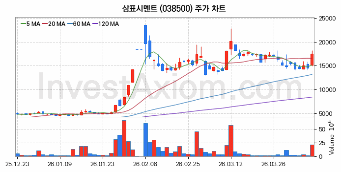 삼표시멘트 (주식 종목 코드 : 038500) 주가 분석 내용의 기준 시점은 2026년 04월 08일이며, 분석 기준 시점으로부터의 주가 흐름 및 거래량 데이터를 바탕으로 분석 한 내용입니다.
