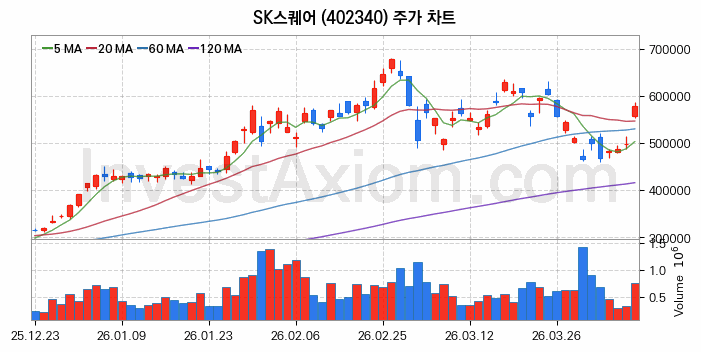 SK스퀘어 (주식 종목 코드 : 402340) 주가 분석 내용의 기준 시점은 2026년 04월 08일이며, 분석 기준 시점으로부터의 주가 흐름 및 거래량 데이터를 바탕으로 분석 한 내용입니다.