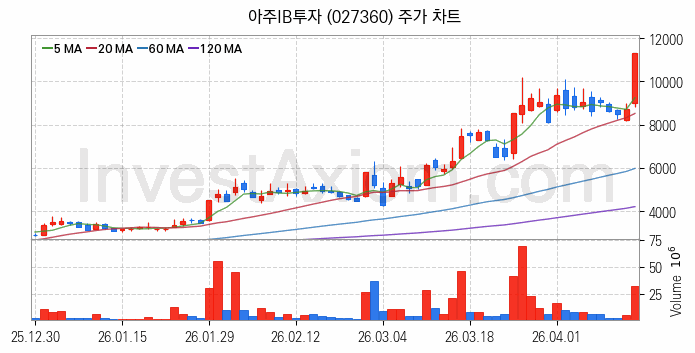 아주IB투자(027360) 종목은 시가 9,010원으로 시작해 11,330원으로 마감했습니다.