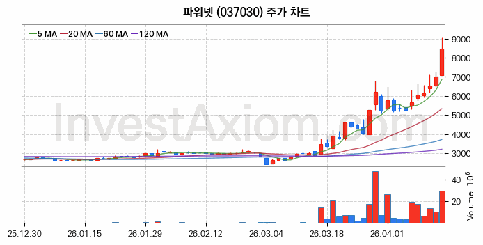 파워넷 (주식 종목 코드 : 037030) 주가 분석 내용의 기준 시점은 2026년 04월 14일이며, 분석 기준 시점으로부터의 주가 흐름 및 거래량 데이터를 바탕으로 분석 한 내용입니다.