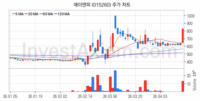 에이엔피(015260) 종목은 시가 655원으로 시작해 829원으로 마감했습니다.