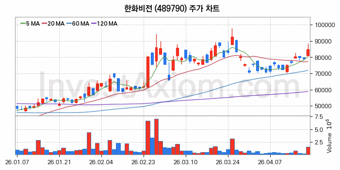 한화비전 (주식 종목 코드 : 489790) 주가 분석 내용의 기준 시점은 2026년 04월 20일이며, 분석 기준 시점으로부터의 주가 흐름 및 거래량 데이터를 바탕으로 분석 한 내용입니다.