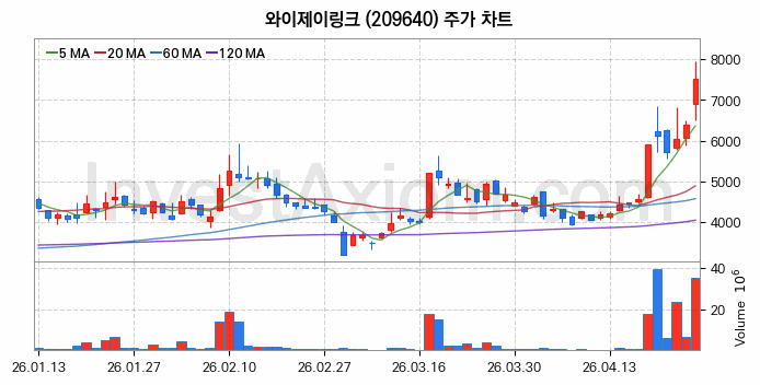 와이제이링크 (주식 종목 코드 : 209640) 주가 분석 내용의 기준 시점은 2026년 04월 24일이며, 분석 기준 시점으로부터의 주가 흐름 및 거래량 데이터를 바탕으로 분석 한 내용입니다.
