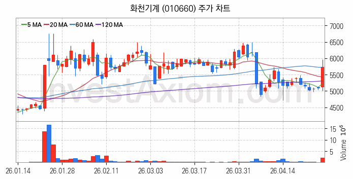 화천기계(010660) 종목은 시가 5,130원으로 시작해 5,730원으로 마감했습니다.