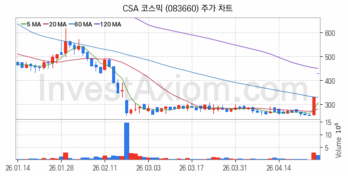 CSA 코스믹(083660) 종목은 시가 430원으로 시작해 430원으로 마감했습니다.