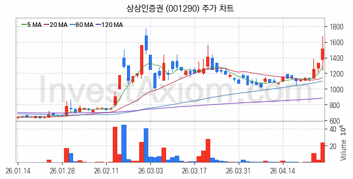 상상인증권(001290) 종목은 시가 1,380원으로 시작해 1,515원으로 마감했습니다.