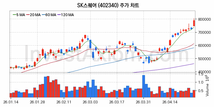 SK스퀘어 (주식 종목 코드 : 402340) 주가 분석 내용의 기준 시점은 2026년 04월 27일이며, 분석 기준 시점으로부터의 주가 흐름 및 거래량 데이터를 바탕으로 분석 한 내용입니다.