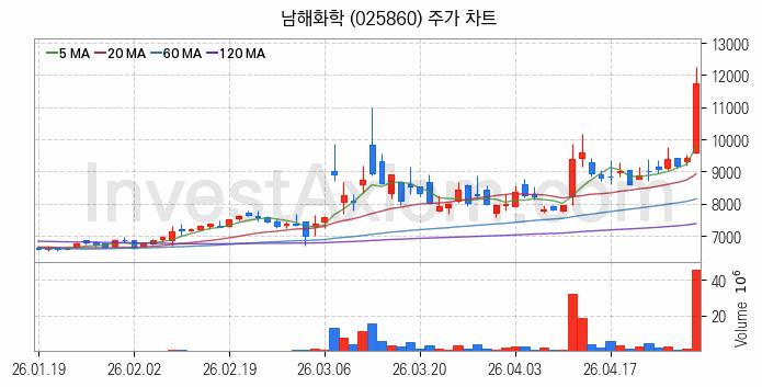 남해화학(025860) 종목은 시가 9,590원으로 시작해 11,740원으로 마감했습니다.