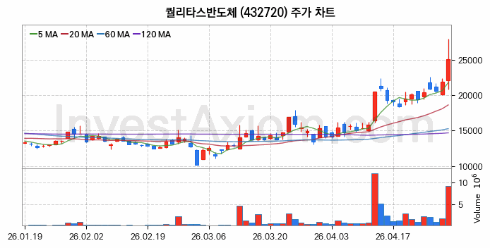 퀄리타스반도체 (주식 종목 코드 : 432720) 주가 분석 내용의 기준 시점은 2026년 04월 30일이며, 분석 기준 시점으로부터의 주가 흐름 및 거래량 데이터를 바탕으로 분석 한 내용입니다.