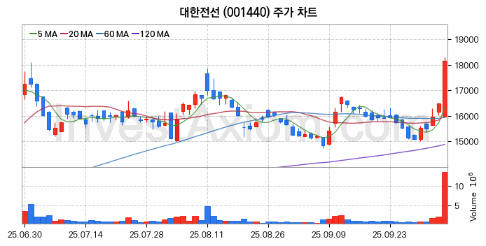 대한전선 주가 전망 분석, 주식 차트 분석과 기간 수익률 및 주가 변동성 분석 (25년10월13일)