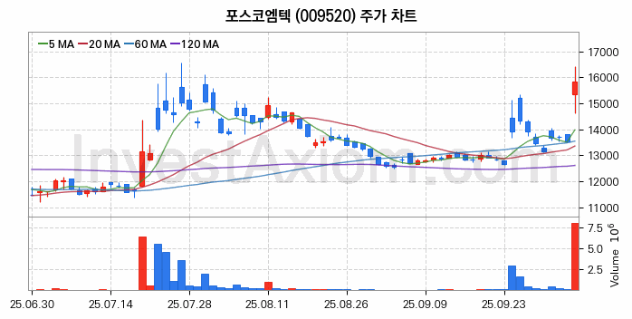 포스코엠텍 주가 전망 분석, 주식 차트 분석과 기간 수익률 및 주가 변동성 분석 (25년10월13일)
